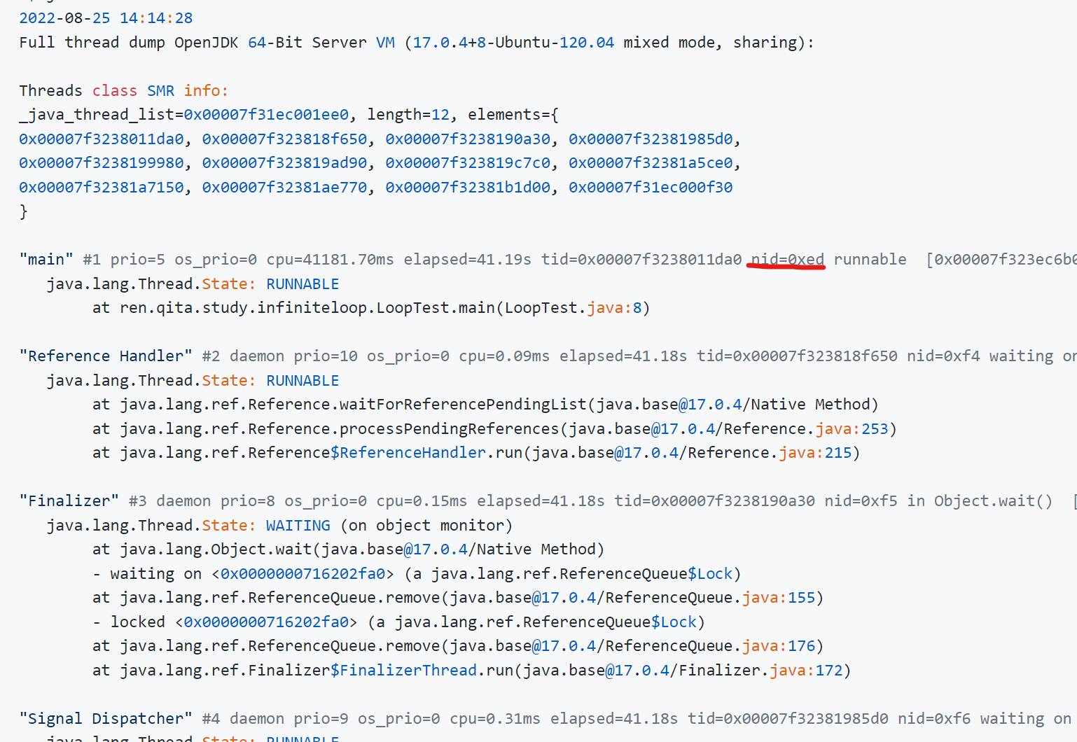 我们把237换成16进制结果为ED,那我们看jstack的结果发现是